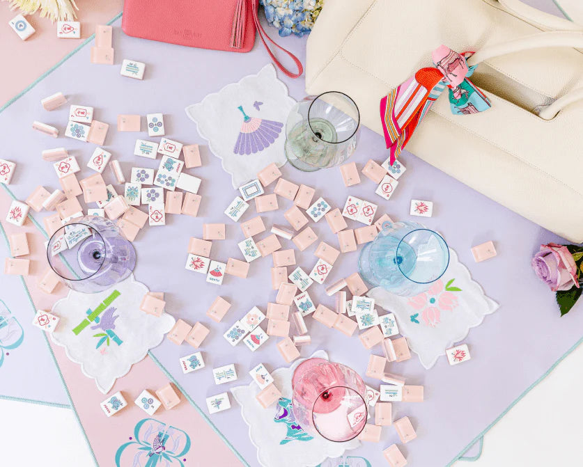 The classic tile set is our take on an American mahjong tile set and is beautiful, dainty, and feminine. We incorporated some of our favorite colors as well as some beautiful symbols and icons.