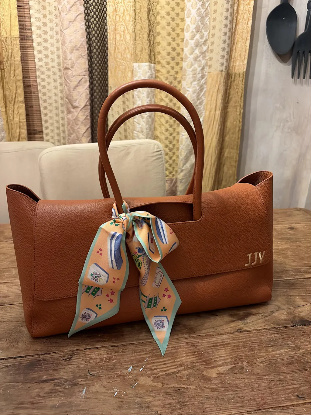 I love this tote!! The caramel color is gorgeous with my initials in gold. The leather feels soft & supple. The tote styling is going to be so versatile. This will not just be for mahjong!!