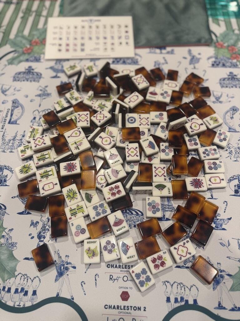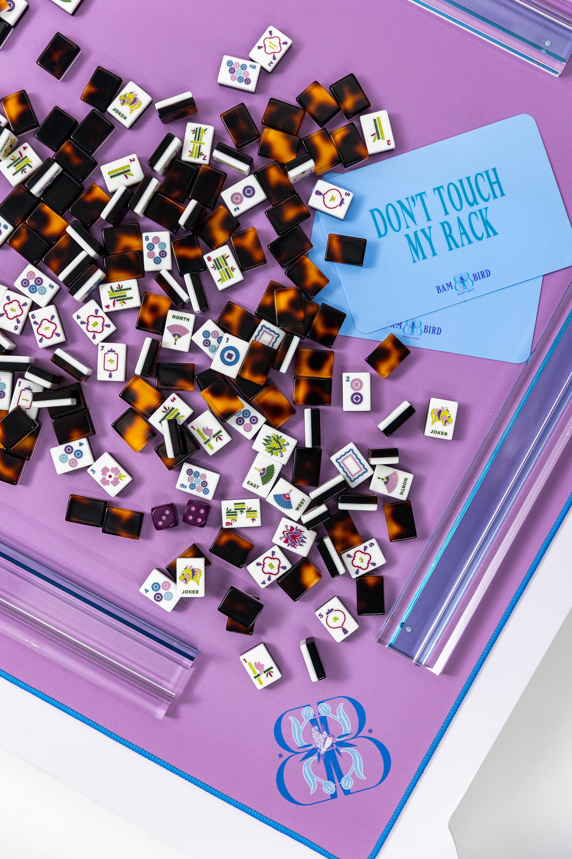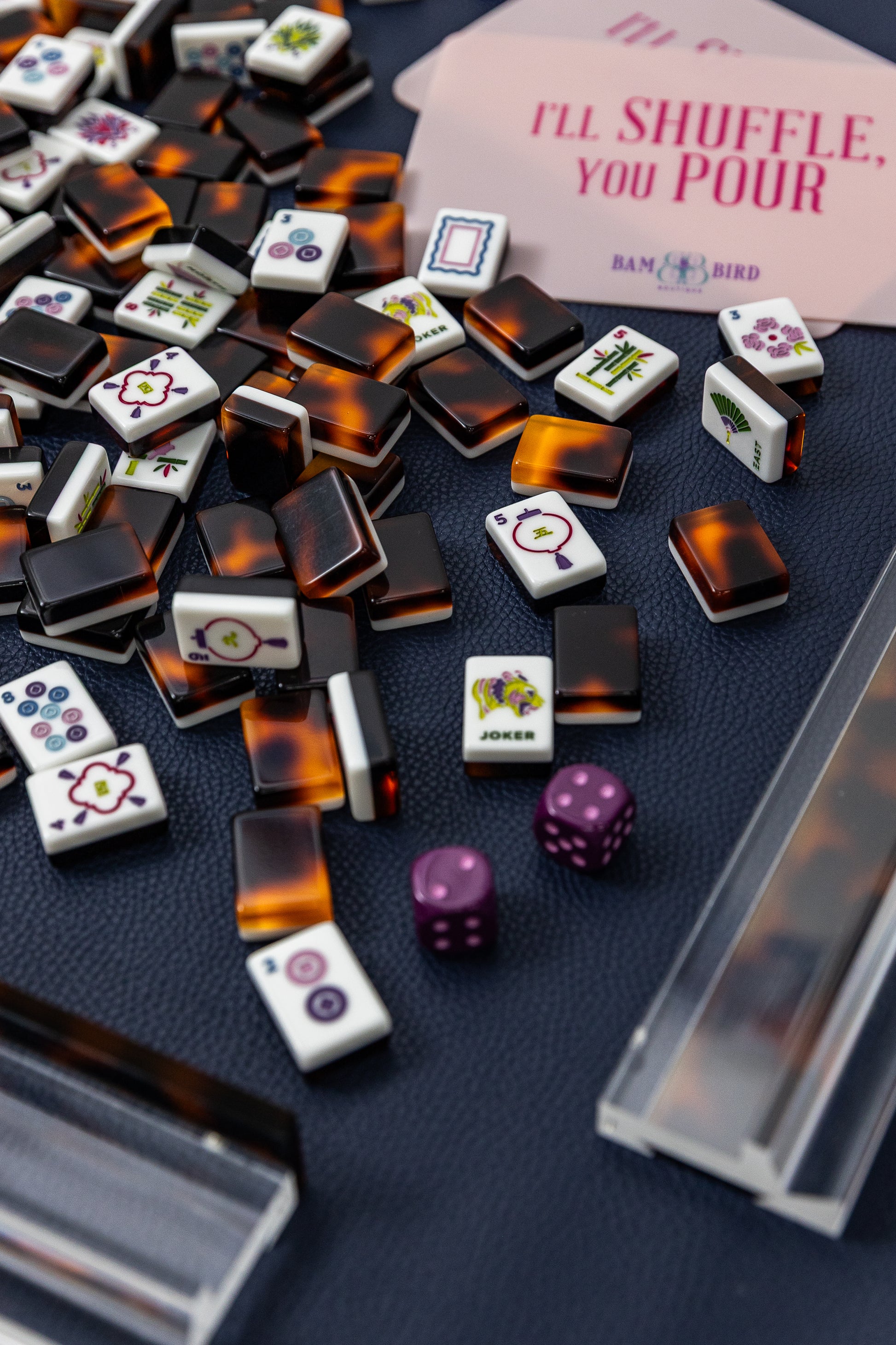 The classic tile set is our take on an American mahjong tile set and is beautiful and unique. We incorporated some of our favorite colors as well as some beautiful symbols and icons and a gorgeous tortoise shell acrylic layered back.