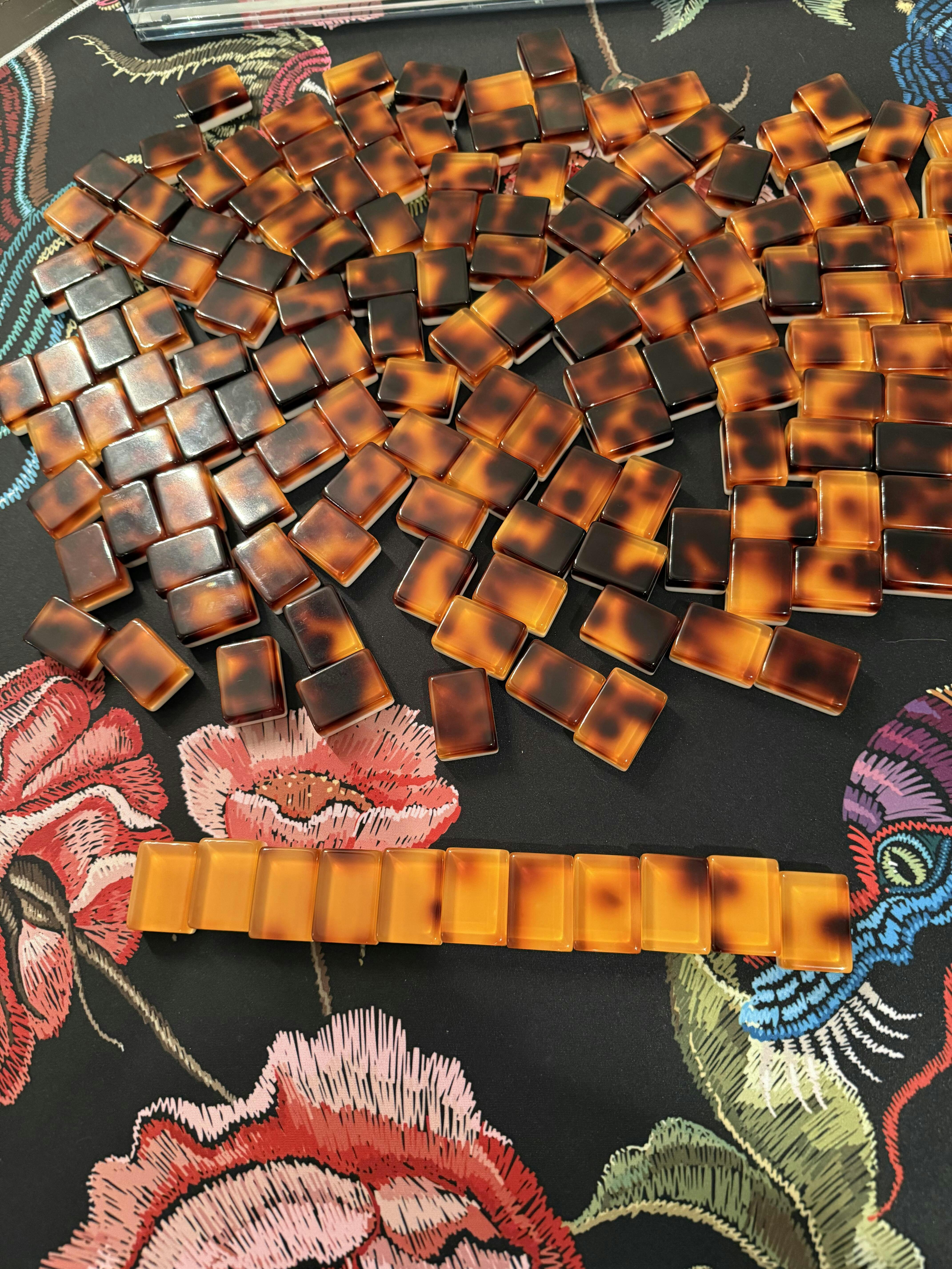- Luxury layered acrylic tiles with hand painted custom designs.