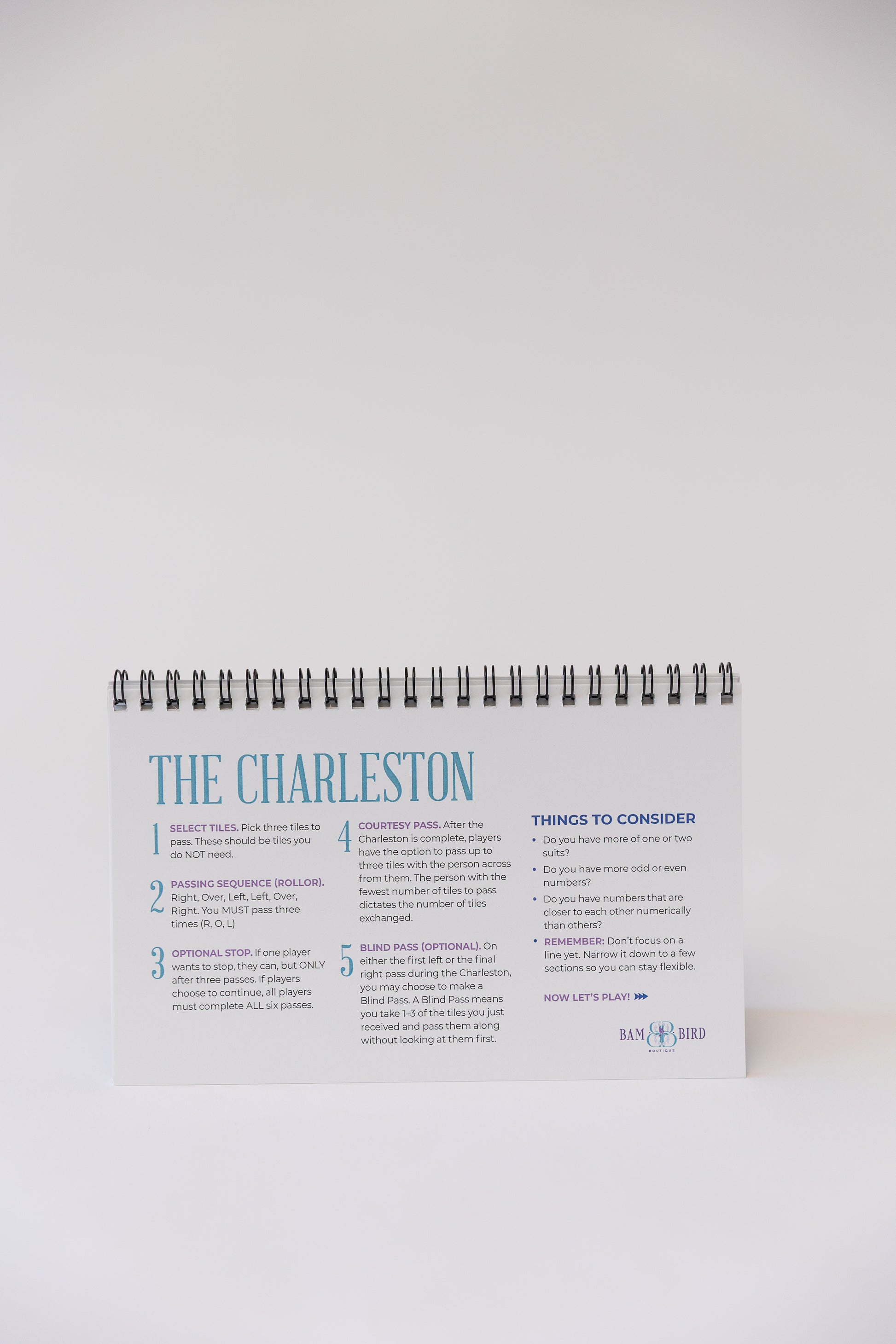 Gain confidence in your Mahjong skills with this easy-to-follow flip book guide, designed to walk you through the game step by step. Whether you’re brand new to Mahjong or need a quick refresher, this guide simplifies National Mah Jongg League–style play with clear explanations, visual examples, and practical tips you’ll actually use at the table.