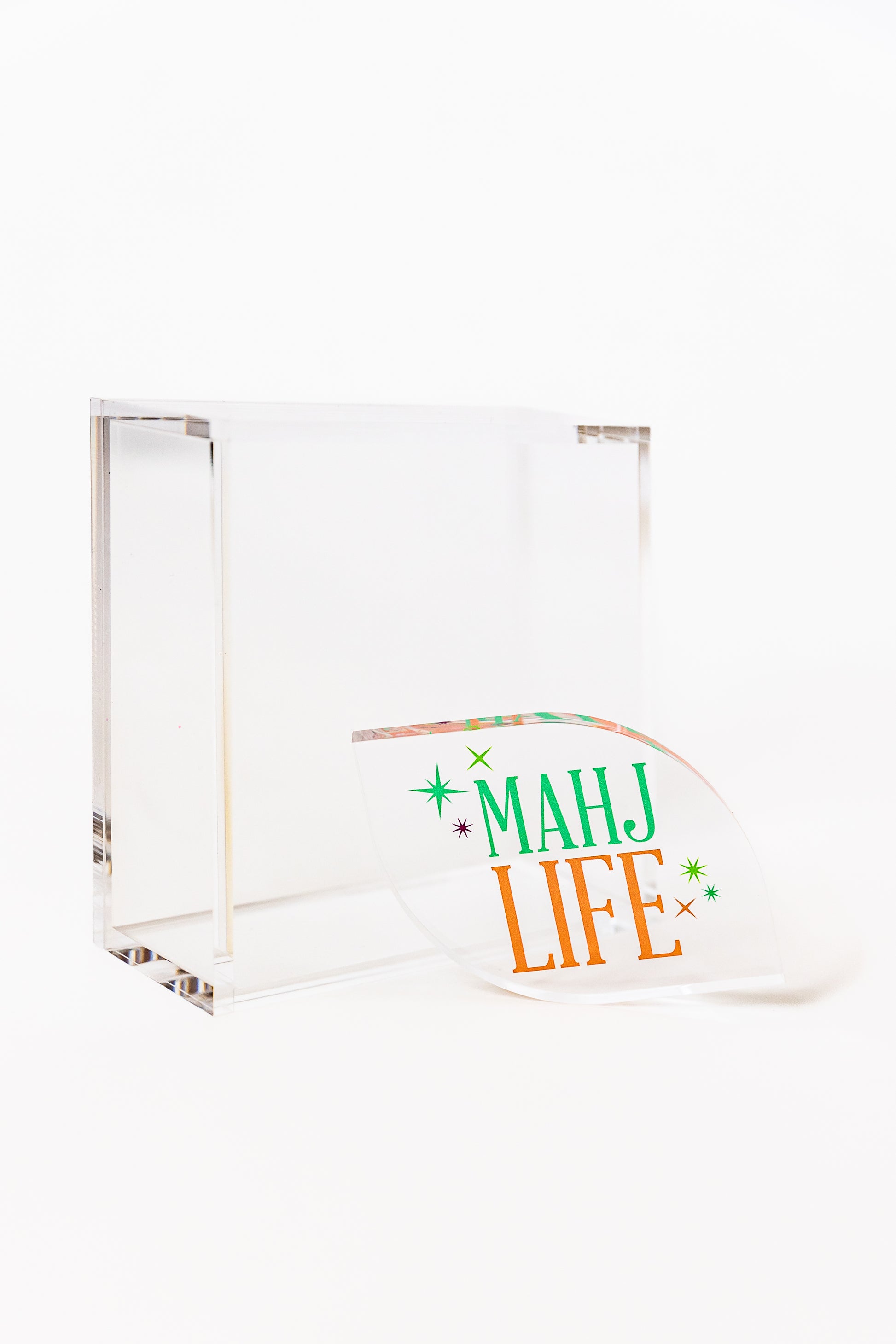 Our stylish lucite napkin holders are available with your choice of printed napkin weight, making them an ideal hostess gift.