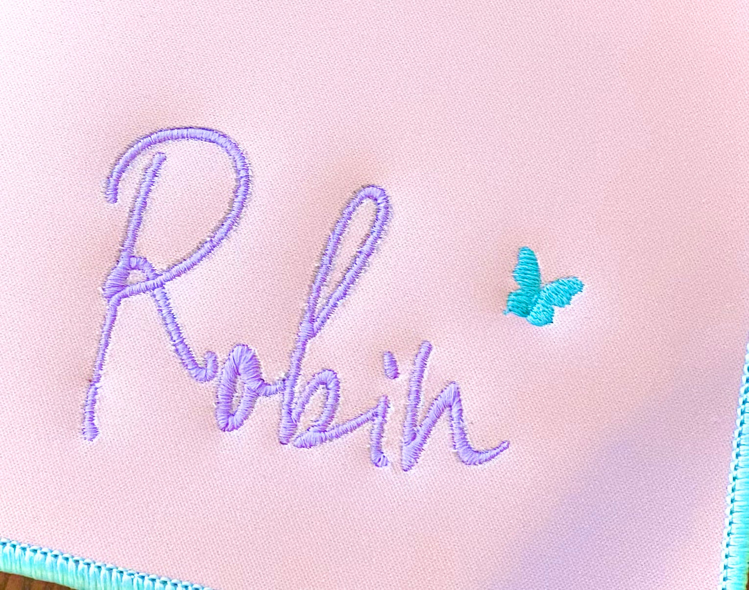- machine washable neoprene with non-slip backing and contrast stitching.